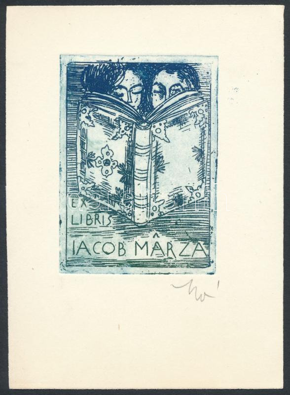 Molnár Dénes (1947-2000): Ex libris Jacob Marza Rézkarc, papír, jelzet...