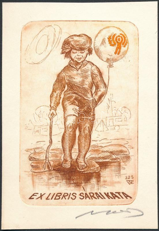 Nagy Lázár László (1935-): Ex Libris Sárai Kata. Rézkarc, papír, jelze...