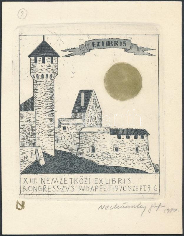Nechánszky József (1936- ): Ex Libris kongresszus Rézkarc, papír, jelzett / Etched bookplate 10x8 cm