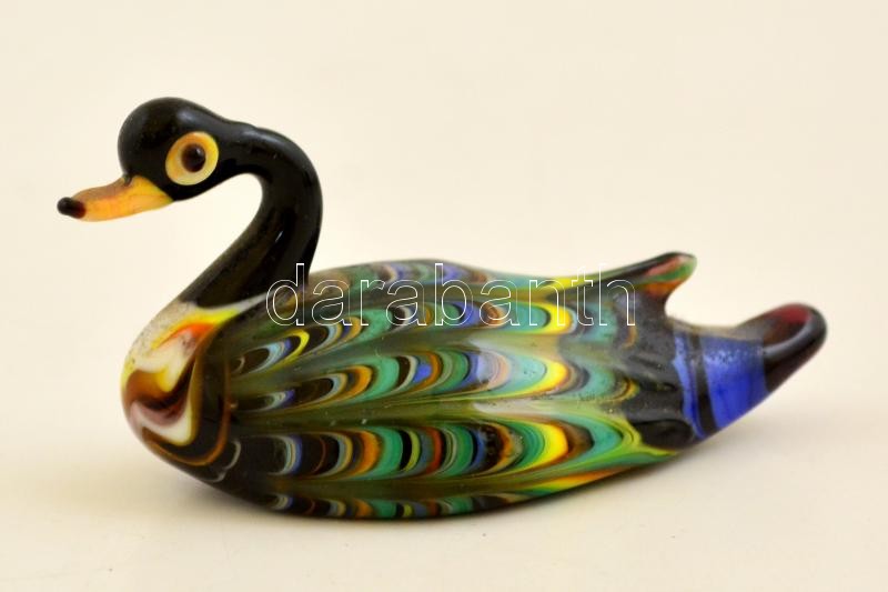 Muranói üveg kacsa asztali dísz, apró kopásokkal, 8×4×4 cm