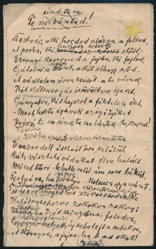 https://www.darabanth.com/en/327-Online-auction/327.0/Other-collectibles/Judaica~1500024/Te-ne-und-te-ne-bantsd-Csillag-Lipot-kezzel-irt-verse-a-veszkorszakbol-annak-erdekeben-~II1824300
