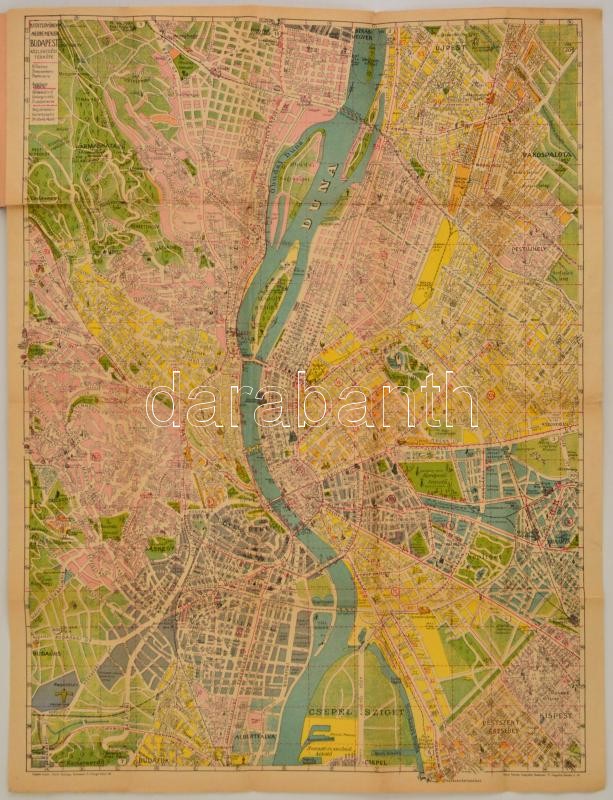 Description: cca 1940 Stoits György: Merre menjek. Budapest útmutató lépten-nyomon. Térkép, utcajegyzékkel. Bp., Dóczi Sándor. Kiadói papírkötés. Térkép mérete, 60x46 cm.