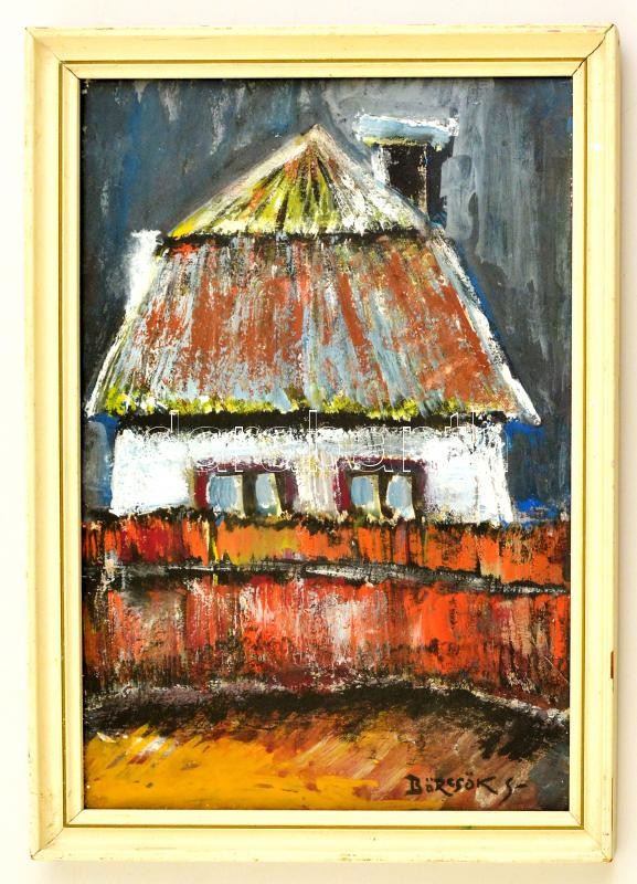 Börtsök jelzéssel: Parasztház. Vegyes technika, papír, 28×20 cm