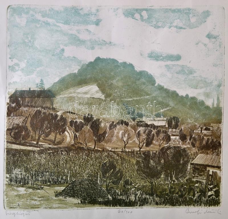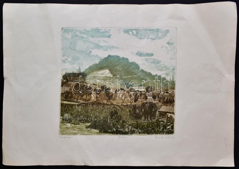 Csurgói Máté Lajos (1931-2001): Szigliget, színezett rézkarc, papír, j...