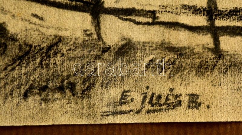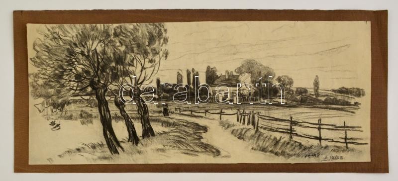 Illés jelzéssel: Kúria a birtokkal. Szén, papír, 24×59 cm