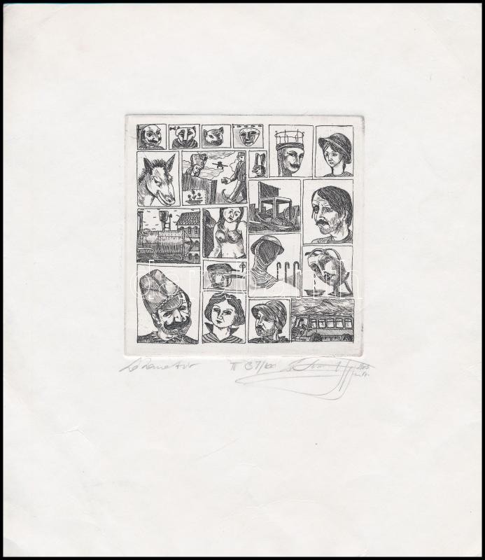Zé Kovács József (1951-): Lokomotív. Rézkarc, papír, jelzett, 10×10 c...
