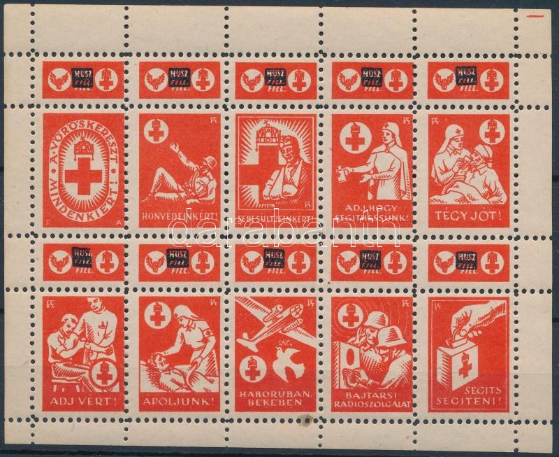 ~1942 Vöröskereszt 20f/10f adománybélyeg 10-es kisív