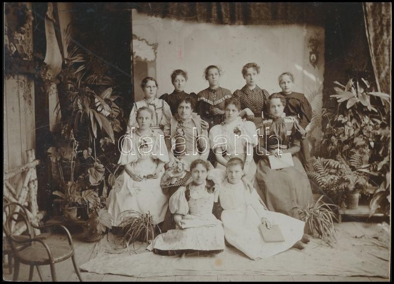 cca 1898 Selmecbánya (Felvidék), Leány színjátszók, keményhátú fotó Ba...