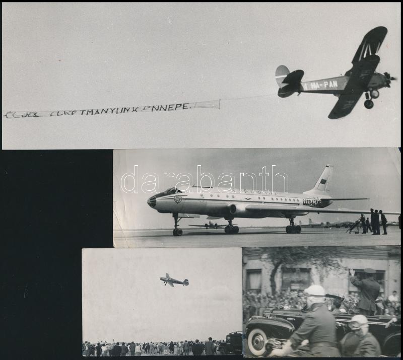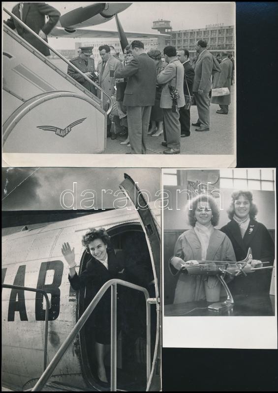 Description: cca 1960 Tiszavölgyi József (1909-?) budapesti fotóriporter hagyatékából 12 db vintage fotó, többsége jelzett, mind a repüléssel kapcsolatos, néhány feliratozva, az egyik fotón Gagarin, 6x9 cm és 13x18 cm között