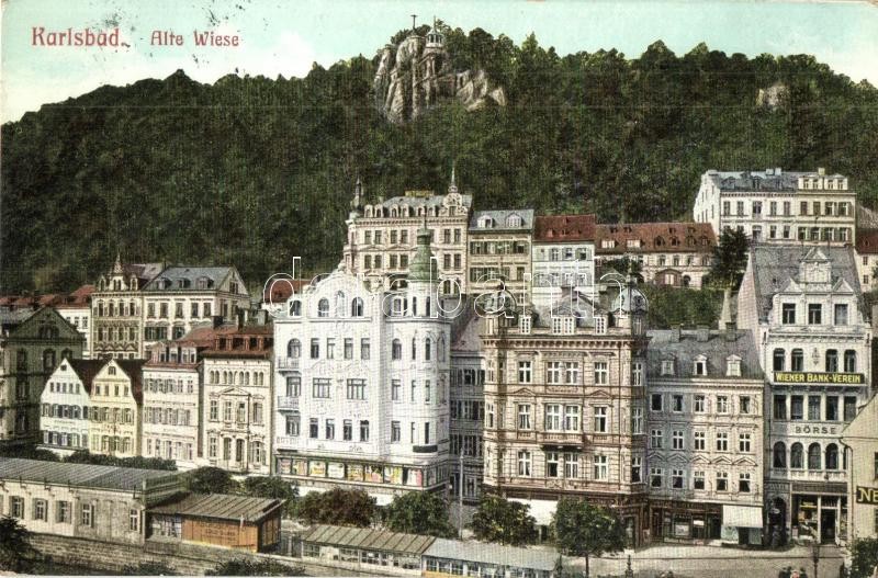 1911 Karlovy Vary, Karlsbad; Alte Wiese, Wiener Bank Verein, Börse / s...