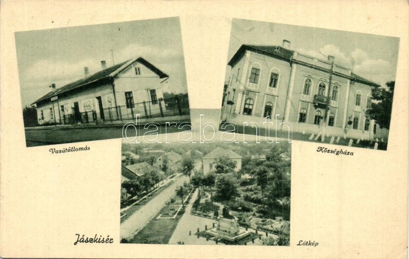 Jászkisér, Vasútállomás, Községháza, látkép. Kollár Józsefné kiadása (EK)