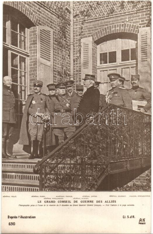 https://www.darabanth.com/en/327-Online-auction/327.0/Postcards/Militaria~1000065/Le-Grand-Conseil-de-Guerre-des-Allies-Allies-Generals-of-WWI-Joffre-French-Porro-Pelle-Sefan~II1821020