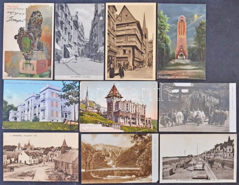 79 db RÉGI külföldi városképes lap, közte leporello album / 79 pre-1945 worldwide town view postcards with leporello
