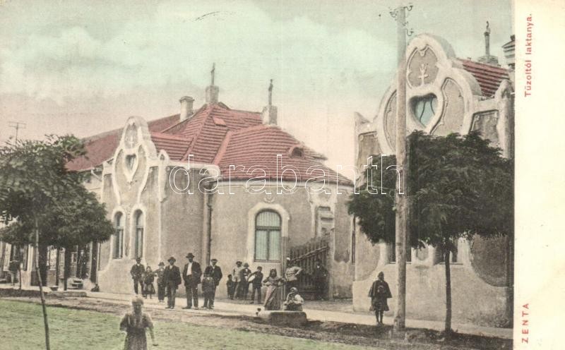 1907 Zenta, Senta; Tűzoltó laktanya. Kragujevits Szabbás saját kiadása / Fire brigade, fire fighters' barrack (EK)