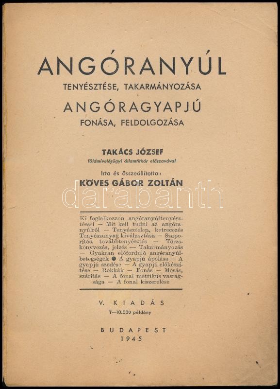 https://www.darabanth.com/en/328-Online-auction/328.0/Books/Books-Gastronomy-and-Gardening~1500008/Koves-Gabor-Zoltan-Angoranyul-Tenyesztes-takarmanyozasa-Angoragyapju-fonasa-feldolg~II1829258