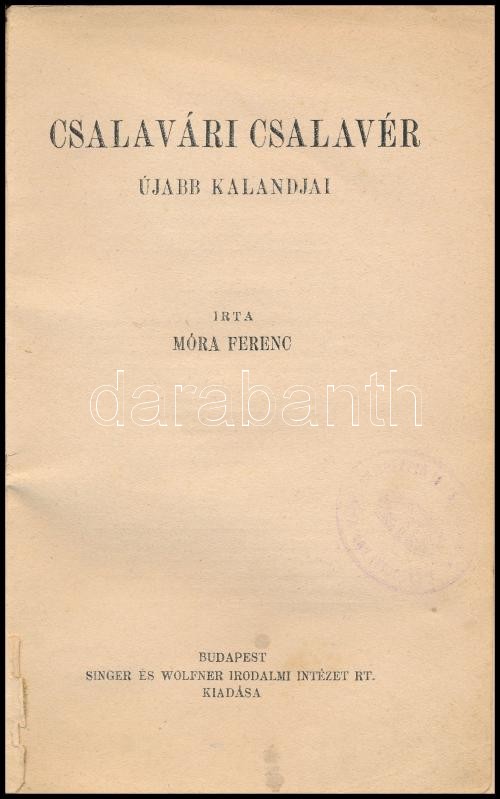 https://www.darabanth.com/en/328-Online-auction/328.0/Books/Books-Tales~1500019/Mora-Ferenc-Csalavari-Csalever-ujabb-kalandjai-Bp-Singer-es-Wolfner-Kiadoi-papirkotes~II1830747