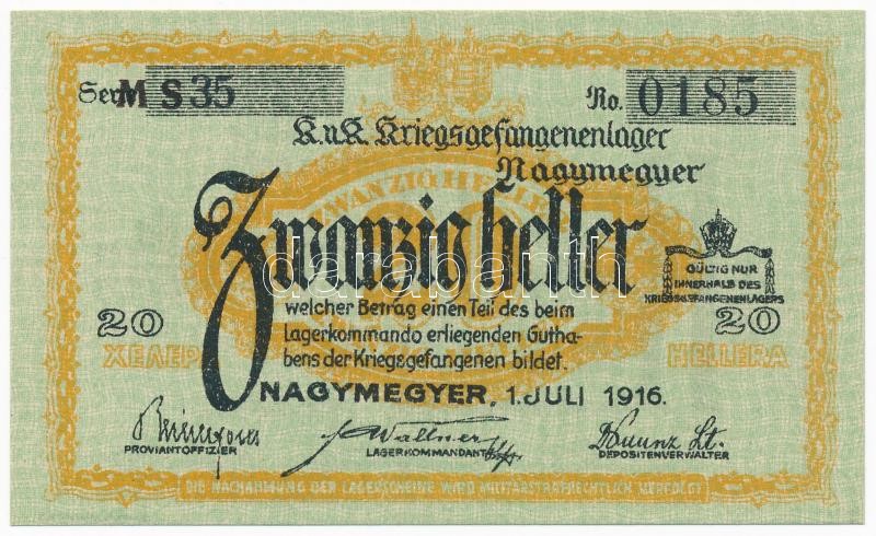 Nagymegyer / Hadifogolytábor 1916. július 1. 20f arab sorozat- és sorszámmal, "MS" betűjelzéssel T:I