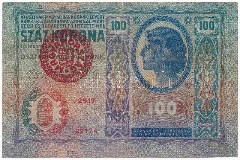 https://www.darabanth.com/en/328-Online-auction/328.0/Numismatics/Hungarian-Banknotes~2500006/1912-100K-piros-MAGYARORSZAG-korbelyegzovel-TIII~II1826770
