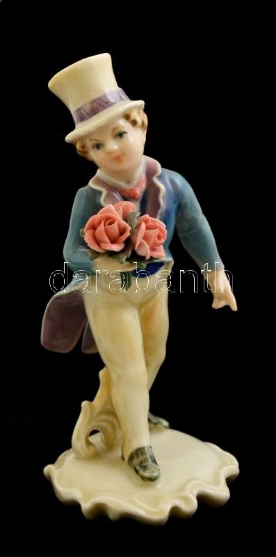 Ens fiúcska rózsával, kézzel festett, jelzett, hibátlan / Ens girl with rose, hand painted m:13cm