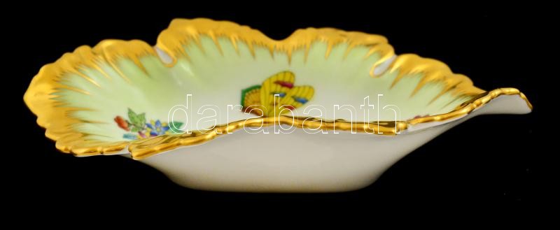 Herendi Viktória mintás leveles tálka, kézzel festett, jelzett, kopásn...