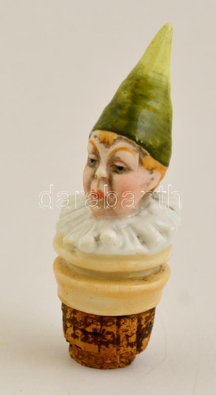 Porcelán dugó"fej", parafa aljjal, kézzel festett, piszkos, jelzés nélkül, m:8 cm