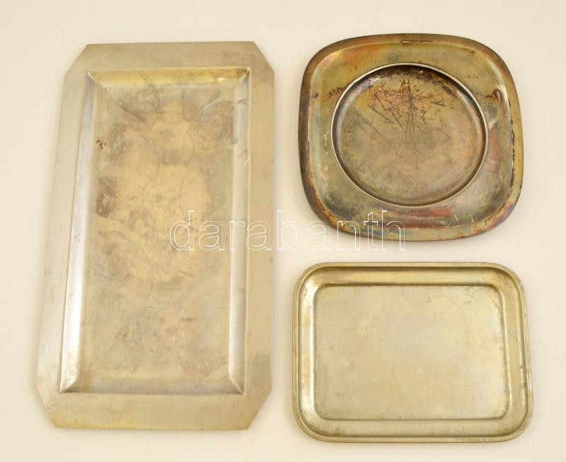 Különféle alpakka tálca, kettő jelzett (Berndorf), 21×16 cm, 21×21 cm,...
