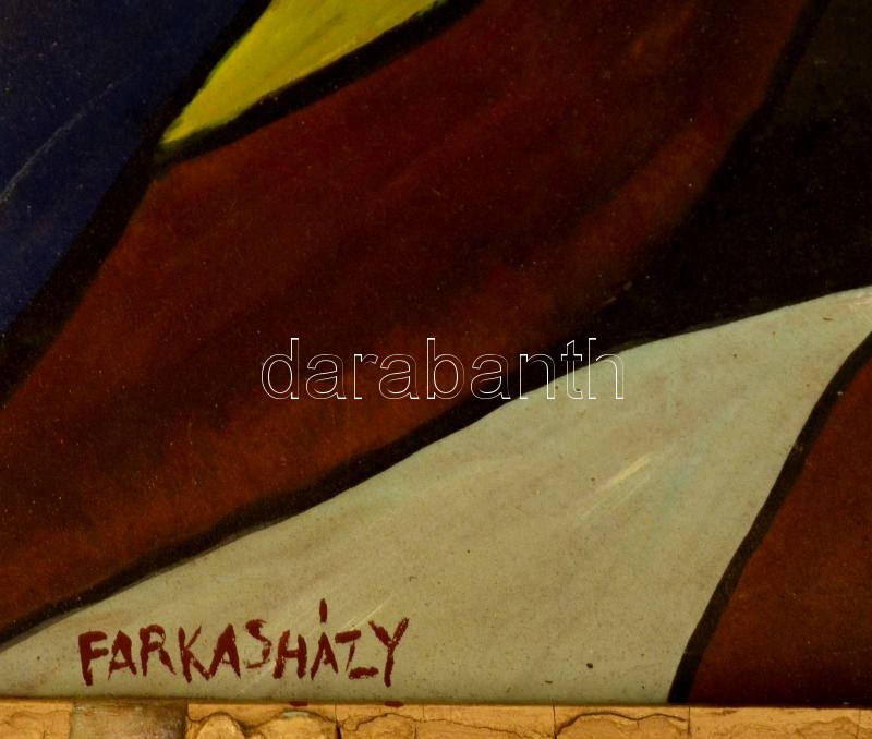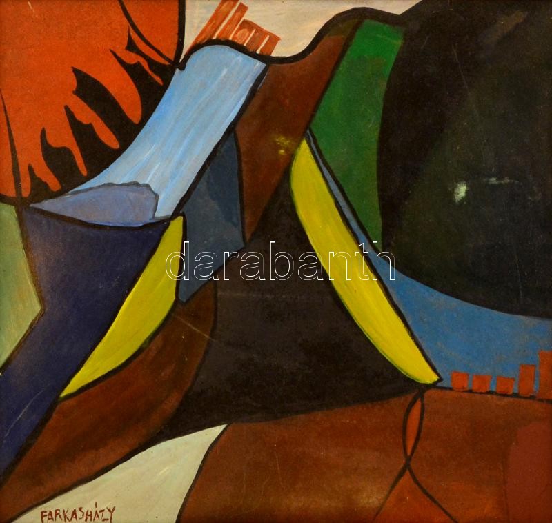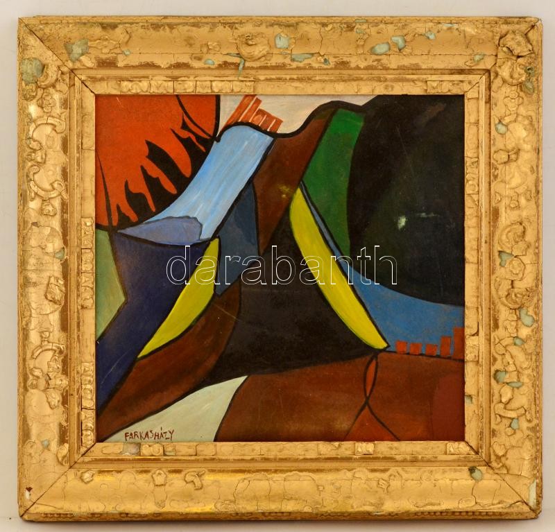 Farkasházy jelzéssel: Kompozíció. Olaj, farost, sérült keretben, 40×40...