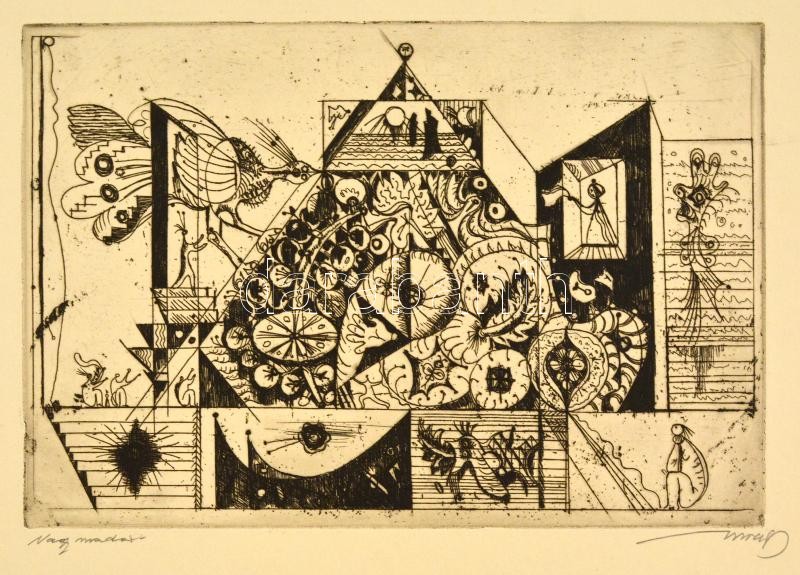 Hincz Gyula (1904-1986): Nagy madár, rézkarc, papír, jelzett, 20×29 cm
