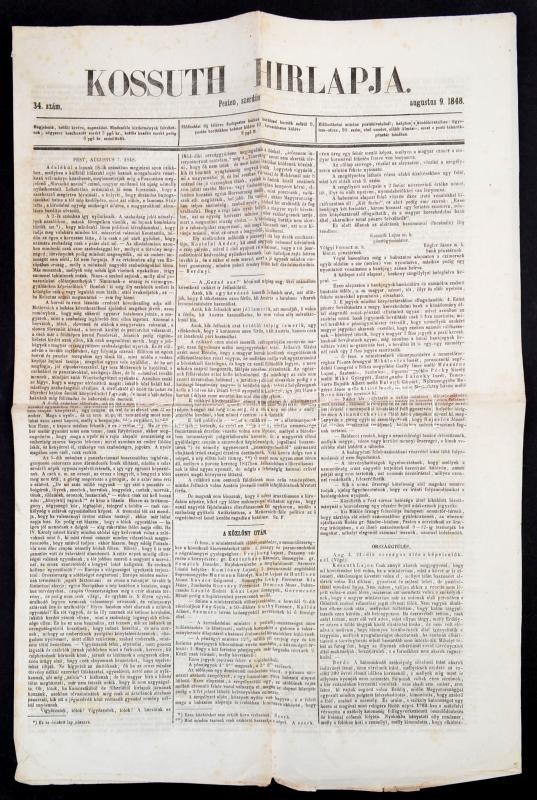 https://www.darabanth.com/en/328-Online-auction/328.0/Other-collectibles/Printed-Materials~1000030/1848-a-Kossuth-Hirlapja-34-lapszama-aug-9-erdekes-aktualis-hirekkel~II1831847