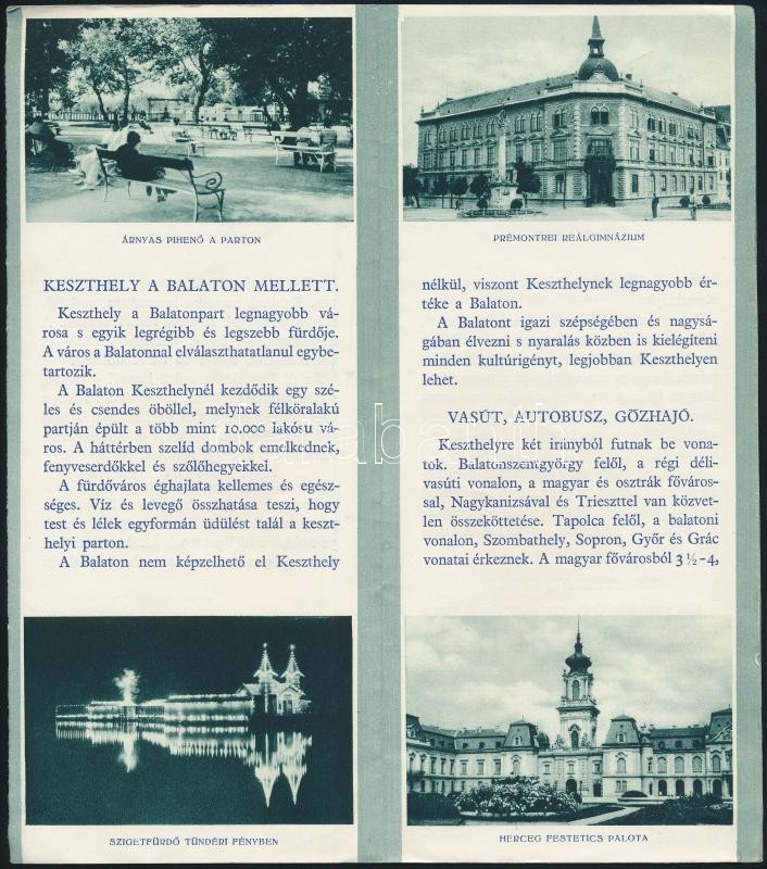 cca 1920-1930 Keszthely nevezetességeit bemutató ismertető prospektus