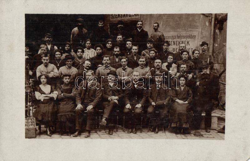 1908 Budapest VII. Hazslinszky gyógyszerész és társai Favorit szénsavgyár (Verseny utca 12.), csoportkép. photo (EK)