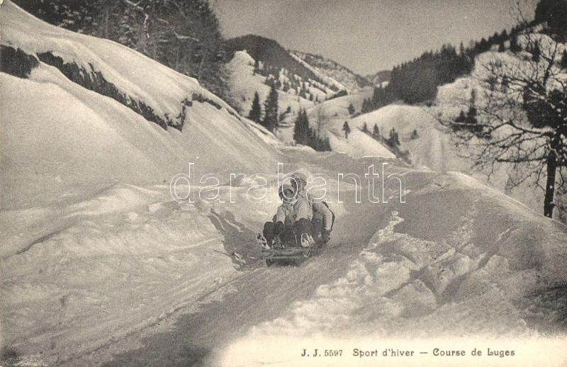 Sport d'hiver. Course de Luges. / Winter sport, toboggan race, bobslei...