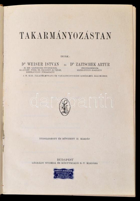 Dr. Weiser István-Dr. Zaitschek Arthur: Takarmányozástan. Bp.,[1930], ... https://www.darabanth.com/en/329-Online-auction/329.0/Books/Books-Gastronomy-and-Gardening~1000007/Dr-Weiser-Istvan-Dr-Zaitschek-Arthur-Takarmanyozastan-Bp-1930-Legrady-Nyomda-es-Konyv~II1780327