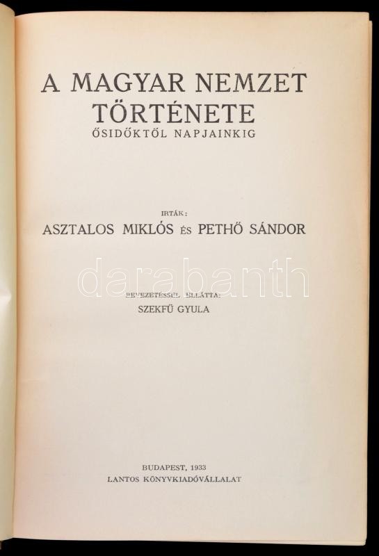 Asztalos Miklós- Pethő Sándor: A magyar nemzet története ősidőktől nap... https://www.darabanth.com/en/329-Online-auction/329.0/Books/Books-History~1000004/Asztalos-Miklos-Petho-Sandor-A-magyar-nemzet-tortenete-osidoktol-napjainkig-Bevezetessel~II1775680