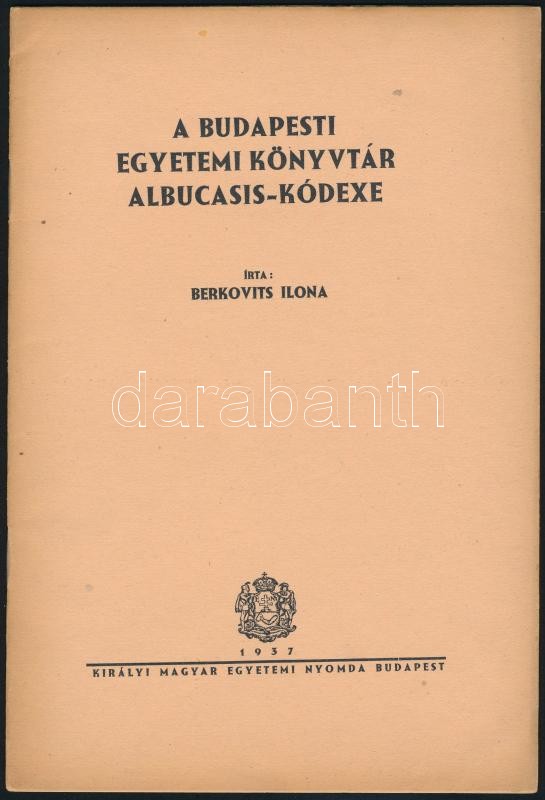 Berkovits Ilona: A budapesti Egyetemi könyvtár Albucasis-Kódexe. Bp., 1938, Kir. Magyar Egyetemi Nyomda. Kiadói papírkötésben.