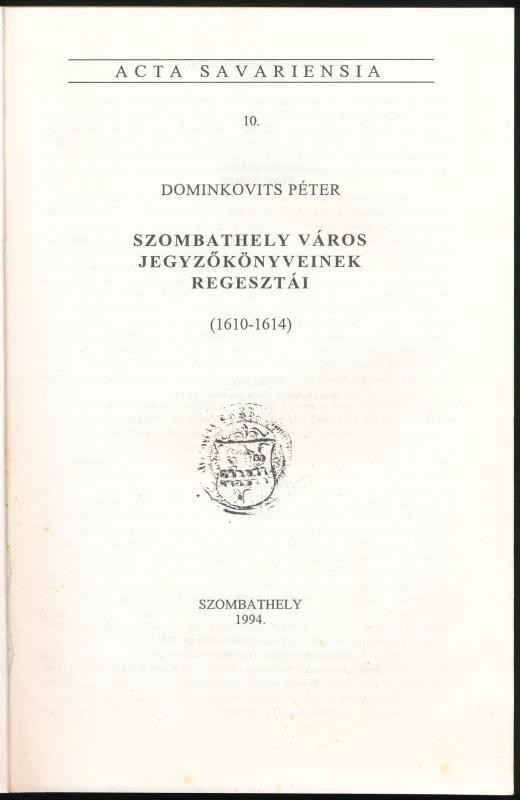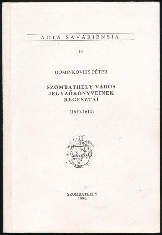 Dominkovits Péter: Szombathely város jegyzőkönyveinek regesztái 1610-1... https://www.darabanth.com/en/329-Online-auction/329.0/Books/Books-History~1000004/Dominkovits-Peter-Szombathely-varos-jegyzokonyveinek-regesztai-1610-1614-Szombathely-1994-S~II1837937