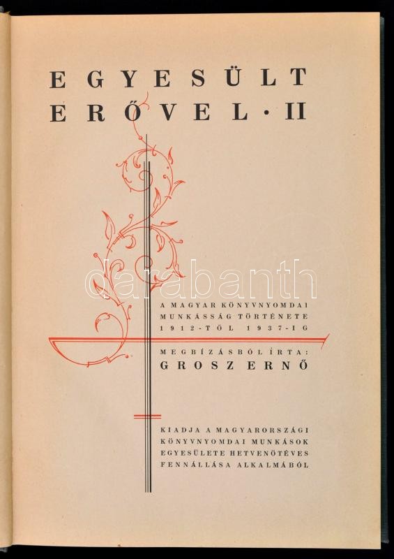 Egyesült erővel II. A magyar könyvnyomdai munkásság története 1912-től... https://www.darabanth.com/en/329-Online-auction/329.0/Books/Books-History~1000004/Egyesult-erovel-II-A-magyar-konyvnyomdai-munkassag-tortenete-1912-tol-1937-ig-Bp-1937-M~II1779397