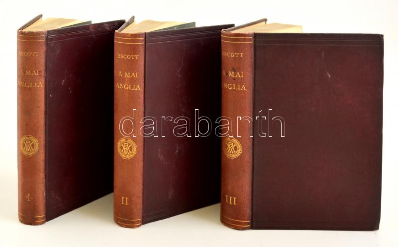 Escott, T.H.S.: A mai Anglia I-III. kötet. Bp., 1905, Magyar Tudományos Akadémia. Kiadói egészvászon kötés, festett lapszélek, jó állapotban.