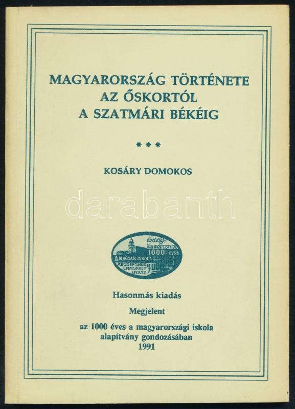 Kosáry Domokos: Magyarország története az őskortól a szatmári békéig. ... https://www.darabanth.com/en/329-Online-auction/329.0/Books/Books-History~1000004/Kosary-Domokos-Magyarorszag-tortenete-az-oskortol-a-szatmari-bekeig-Bp-1991-1000-eve~II1758877