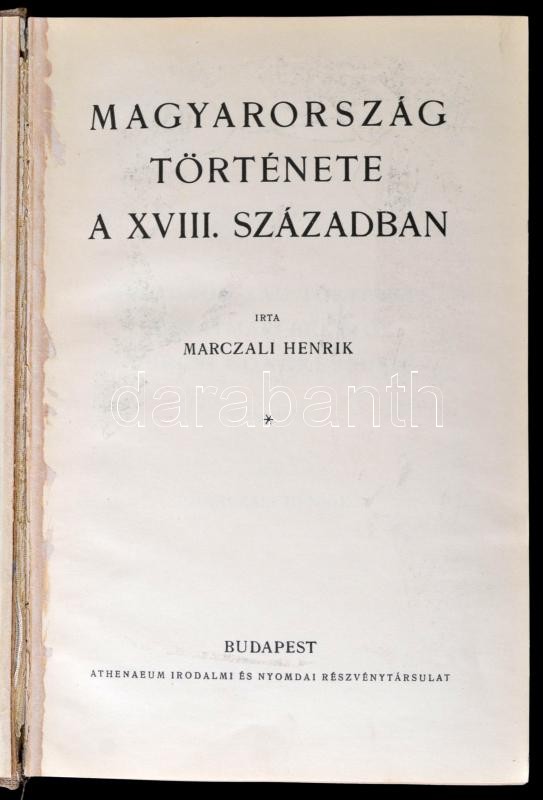 Marczali Henrik: Magyarország története a XVIII. században. Bp., Athen... https://www.darabanth.com/en/329-Online-auction/329.0/Books/Books-History~1000004/Marczali-Henrik-Magyarorszag-tortenete-a-XVIII-szazadban-Bp-Athenaeum-Egeszvaszon-kote~II1836522