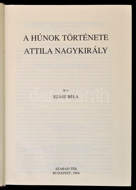 Szász Béla: A húnok története. Attila nagykirály. A szerző munkásságát... https://www.darabanth.com/en/329-Online-auction/329.0/Books/Books-History~1000004/Szasz-Bela-A-hunok-tortenete-Attila-nagykiraly-A-szerzo-munkassagat-ismerteto-tanulma~II1823415