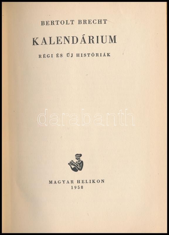 Brecht, Bertold: Kalendárium. Régi és új históriák. Bp., 1958 Magyar H... https://www.darabanth.com/en/329-Online-auction/329.0/Books/Books-Other-rarities~1000018/Brecht-Bertold-Kalendarium-Regi-es-uj-historiak-Bp-1958-Magyar-Helikon-451100-szamozo~II1732506