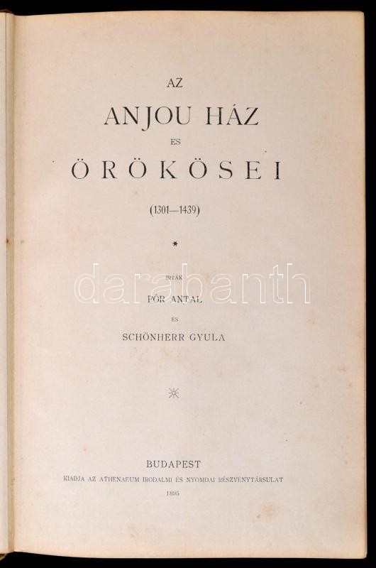 Pór Antal-Schönherr Gyula: Az Anjou ház és örökösei. (1301-1439.) A Ma... https://www.darabanth.com/en/329-Online-auction/329.0/Books/Books-Other-rarities~1000018/Por-Antal-Schonherr-Gyula-Az-Anjou-haz-es-orokosei-1301-1439-A-Magyar-Nemzet-Tortenete~II1835310