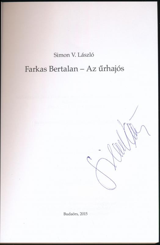 Description: Simon V. László: Farkas Bertalan - Az űrhajós. Budaörs, 2015, Starkiss Kft-ny. Kiadói papírkötés. A szerző által aláírt. Farkas Bertalan által dedikált.