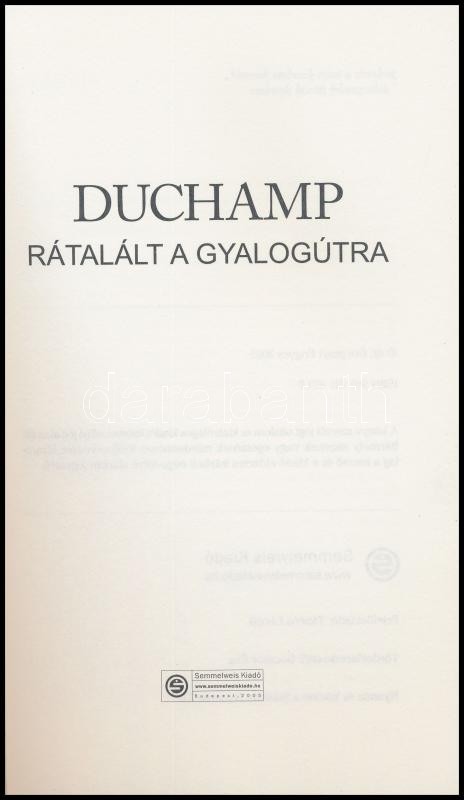 Dr. Görgényi Frigyes: Duchamp rátalált a gyalogútra. Bp., 2005, Semmelweis Kiadó. Kiadói papírkötés.