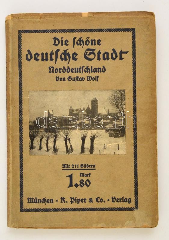 Gustav Wolf: Die Schöne Deutsche Stadt. Norddeutschland von - -. München,(1913), R. Piper & Co. Német nyelven. Számos fekete-fehér fotókkal a német városokról. Kiadói papírkötés, kiadói papír védőborítóban, a papír védőborító széle szakadozott./Paperbinding, with little bit raunchy cover, in German language.