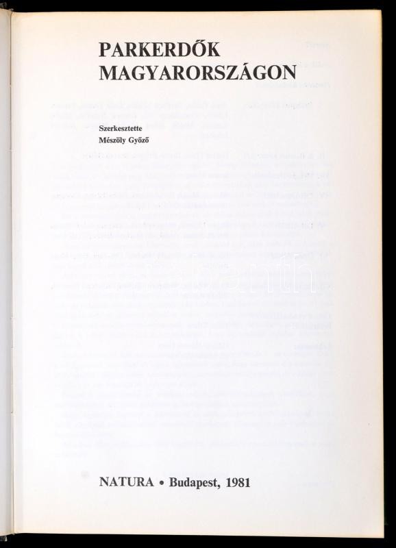 Parkerdők Magyarországon. Szerk.: Mészöly Győző. Bp.,1981, Natura. Kiadói kartonált papírkötés.