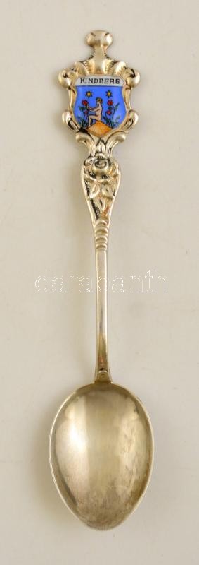 Ezüst(Ag) "Kindberg" címeres zománcozott díszkanál, jelzett,...