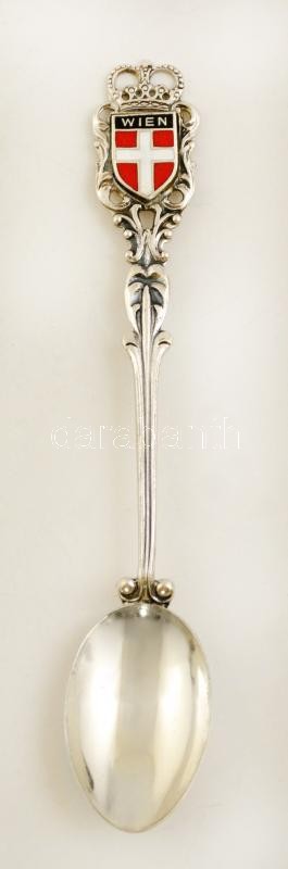 Ezüst(Ag) "Wien" címeres zománcozott díszkanál, jelzett, h: ...
