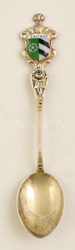 Ezüst(Ag) "Zeltweg" címeres zománcozott díszkanál, jelzett, ...